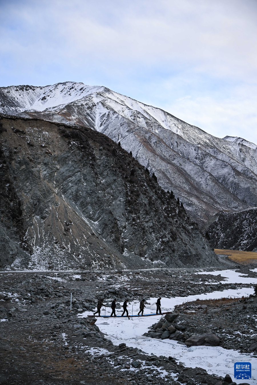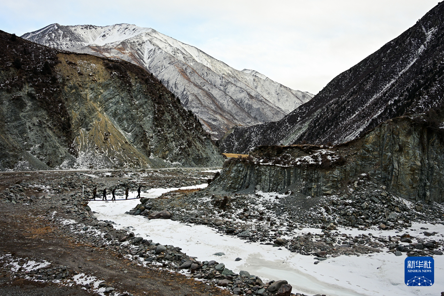 1月8日,在青海省海北藏族自治州门源回族自治县境内的老虎沟,民警和生态管护员在巡护祁连山。新华社记者 齐芷玥 摄