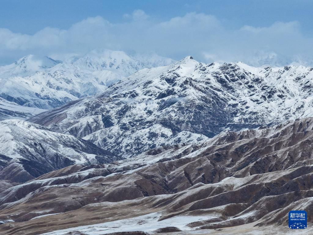 3月15日,青海省果洛藏族自治州玛沁县雪后迎来晴好天气,群山被白雪覆盖,与蓝天相映,构成一幅壮美的高原春日图景(无人机照片)。新华社记者 张龙 摄